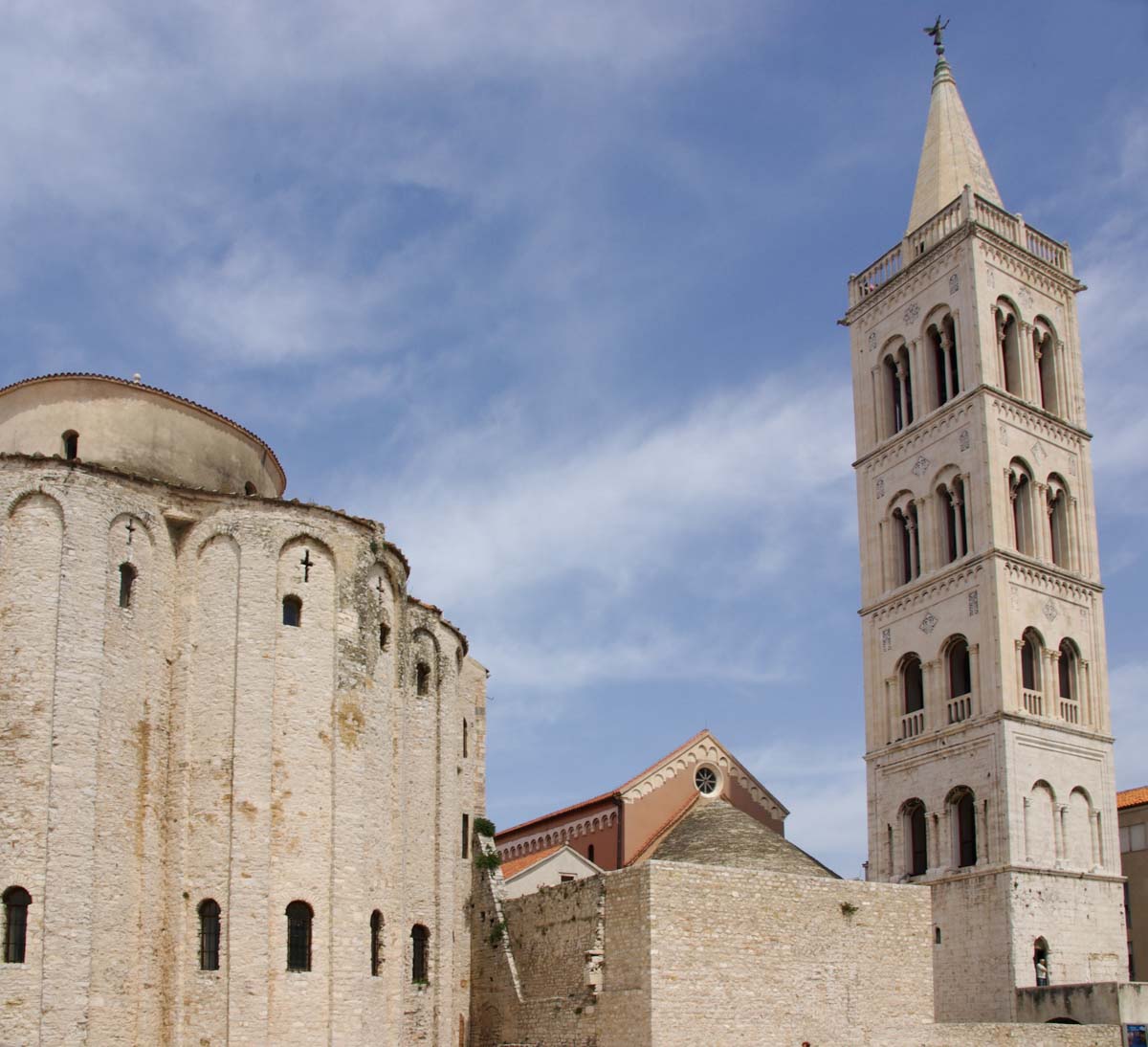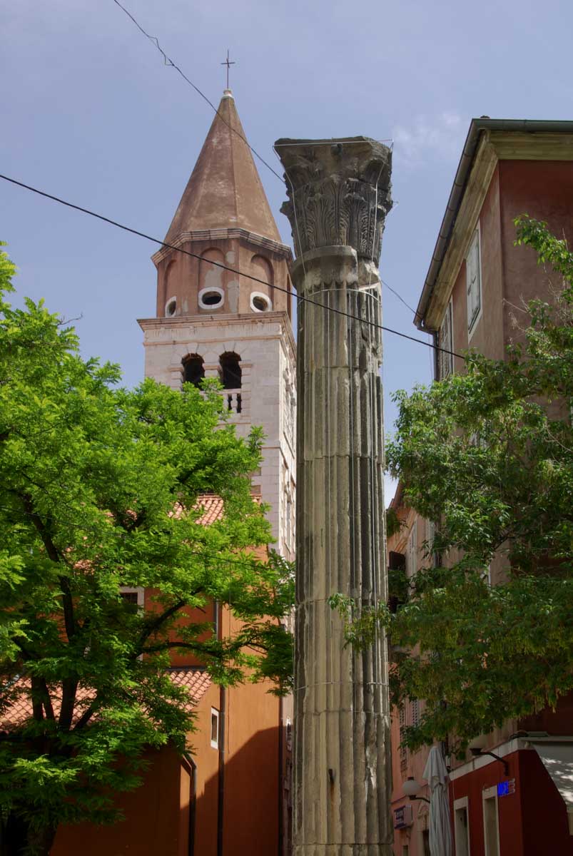 Le forum romain est aujourd'hui occupé, outre des restes de colonnes et dalles antiques, par l'église préromane St Donat . À côté, se dresse le campanile de la cathédrale