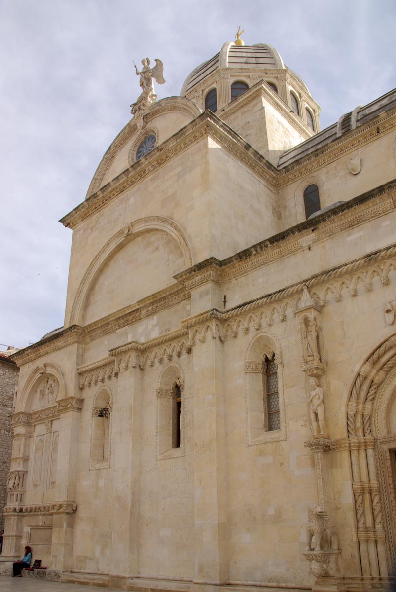 Au chevet de la cathédrale, on peut admirer 72 têtes sculptées, œuvre du grand architecte Georges le Dalmate, représentant des passants de la rue